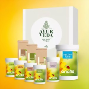 Die Ayurveda Body & Soul Kurpackung besteht aus 2x Ashwaganda (90 Kps.), 2x Brahmi (90 Kps.), 2x Triphala (90 Kps.), 1x Shilajit (90 Kps.), 1x Guggul (180 Kps.), 1x Akazienfaser (360 g Pulver), 1x Fenchel (100 g), 1x Kreuzkümmel (100 g), 1x Koriander (100 g) und 1x Anleitung in einer schönen Box. Die Einzelpreise dieser Produkte summieren sich auf 286,00 Euro, so dass Sie mit der Ayurveda-Kur nicht nur alles in der empfohlenen Menge mit einer professionellen Erklärung zusammen haben, sondern auch noch 37,00 Euro sparen.