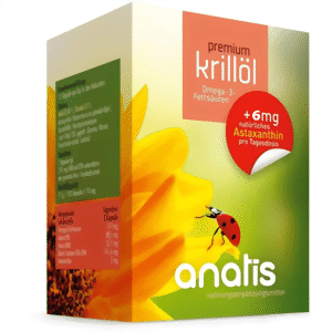 **Astaxanthin hat eine Reihe sehr guter Eigenschaften und ist darum auch als eigenes Nahrungsergänzungsmittel am Markt erhältlich. Beim Premium-Krillöl erübrigt sich der Kauf eines zusätzlichen Astaxanthin-Präparates, da mit 2 Kapseln täglich bereits 6 mg Astaxanthin aufgenommen werden. Astaxanthin ist ein öl-lösliches, starkes Antioxidans und reduziert Oxidationsprozesse (“Ranzig werden von Fetten”) – das ist günstig für die Produktqualität und für die Gesundheit! Krill ernährt sich von Mikroalgen, der eigentlichen Quelle des roten Farbstoffes Astaxanthin. Es ist im Krillöl natürlich gebunden und wird im Premium-Krillöl noch zusätzlich in natürlicher Form aus der Haematococcus pluvialis Alge zugefügt. Optisch erkennbar ist der hohe Astaxanthin-Gehalt an der schwarzen Färbung (die Kapselhülle selbst ist farblos).